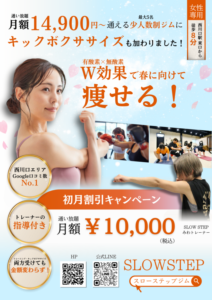 SLOW STEPはマンツーマンではなく、少人数制のセミパーソナルジムを取り入れております。通い放題プランが月額29,800円なので、運動習慣を身につけたい方や本気で痩せたい方は高コスパでジムに通うことができます。